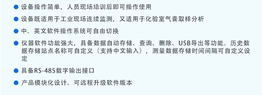 SO2、NO、CO、CO2≤±1%FS;O2≤±2%FS