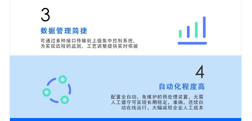 配置全自動,免維護的預處理裝置,無需人工值守可實現長期穩定,準確,連續自動在線運行,大幅減輕企業人工成本