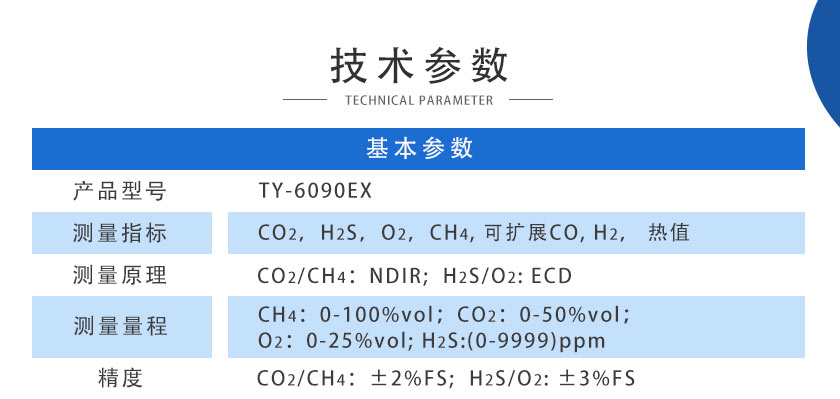 • 壁掛式沼氣分析儀 TY-6090 采用進口NDIR非分光紅外傳感器,長壽命電化學傳感器,運用先進的數字處理技術,可同時測量沼氣中CH4、CO2、H2S、O2、CO、H2的體積濃度,根據氣體濃度值快速準確計算出相應的熱值。