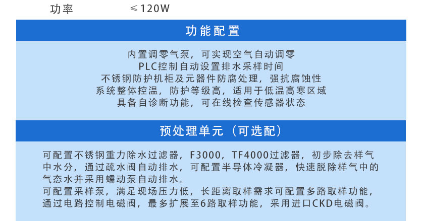 可選配預處理單元,實現多路取樣,除水功能