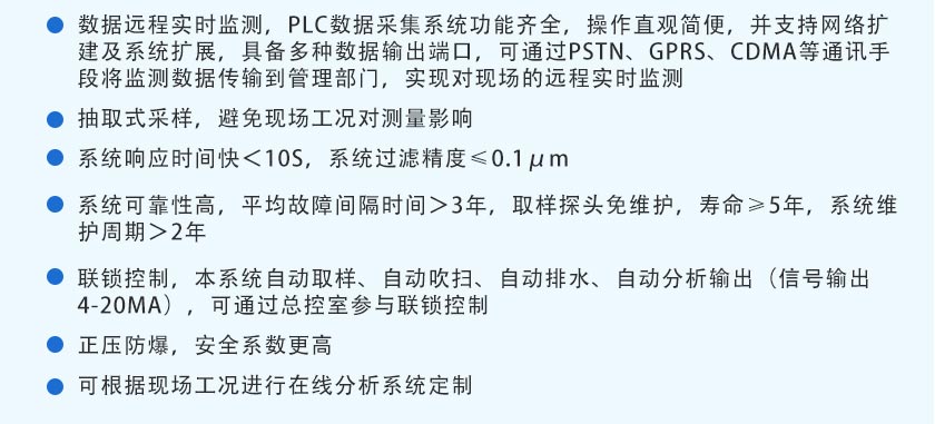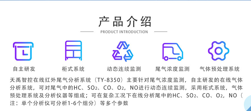 天禹智控在線紅外尾氣分析系統(TY-8350)主要針對尾氣濃度監測,自主研發的在線氣體分析系統,可對尾氣中的HC、SO?、CO、O?,NO進行動態連續監測。 餐廚沼氣在線分析系統(TY-8350)采用柜式系統,氣體預處理系統及分析儀器等組成;可在復雜工況下在線分析尾中的HC、SO?、CO、O?,NO(注:單個分析儀可分析1-6個組分)等多個參數。 針對尾氣現場工況條件,天禹智控自主研發紅外氣體傳感器、電化學氣體傳感器、利用多年成熟的分析控制技術和預處理取樣技術,創造性的設計提供方案。