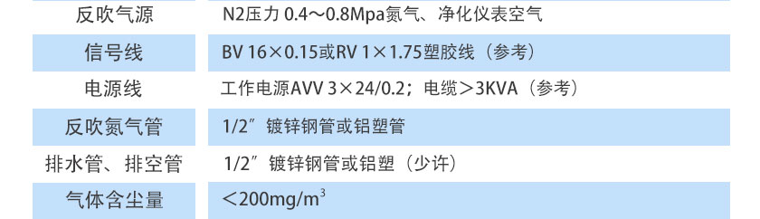 N2壓力 0.4~0.8Mpa氮氣、凈化儀表空氣