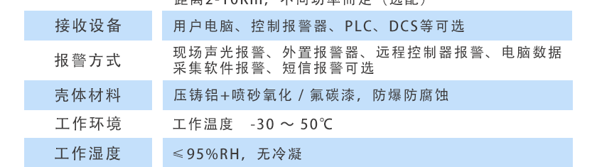 現(xiàn)場聲光報警、外置報警器、遠程控制器報警、電腦數(shù)據(jù)采集軟件報警、短信報警可選 |