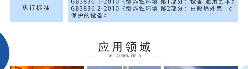 GB3836.1-2010《爆炸性環(huán)境 第1部分設(shè)備通用要求》 GB3836.2-2010《爆炸性環(huán)境 第2部分由隔爆外殼“d”保護的設(shè)備》 |