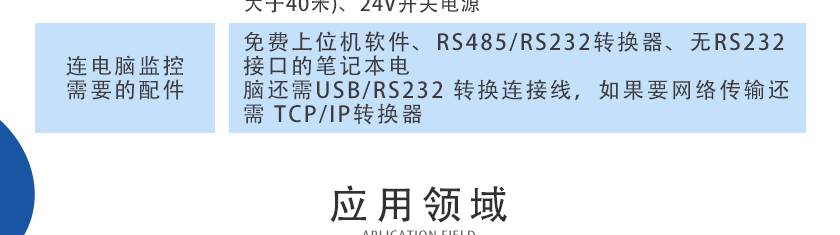 免費上位機軟件、RS485/RS232轉換器、無RS232接口的筆記本電腦還需USB/RS232 轉換連接線,如果要網絡傳輸還需 TCP/IP轉換器