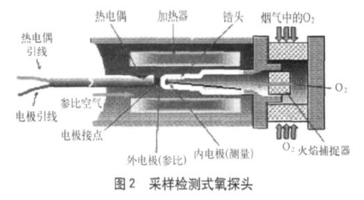 氧探頭使用時,引入被測氣體的方式有直插式和采樣檢測式兩種。直插式響應時間短、不需要加熱器、結構簡單、小型輕便,但要求同時檢測被測氣體的溫度。采樣檢測式由于氧探頭的溫度由加熱器控制,因此測量精度高、工作可靠,但響應時間取決于氣體的流量。