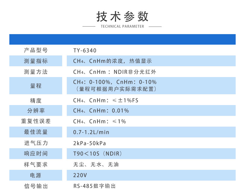 CH4:0-100%,CnHm:0-10%(量程可根據用戶實際需求配置)