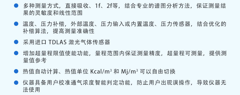 • 便攜激光天然氣分析儀 TY-6510P 采用國際先進的TDLAS激光技術,主要用于測量各種天然氣、生物燃氣中的CH4、CnHm?等氣體體積濃度及熱值。 武漢天禹智控研發的在線激光天然氣熱值儀標準化機箱、測量精度高、結構簡單、維護方便,軟件功能強大,可拓展性強、現場實用性好,目前暢銷國內外。 適用于高校、環境科研機構,燃氣計量檢測部門、節能監測部門,液化氣廠、液化氣站、天然氣公司等直接用戶,燃氣具生產企業、廠商測量可燃氣體不同成分的體積濃度和熱值。