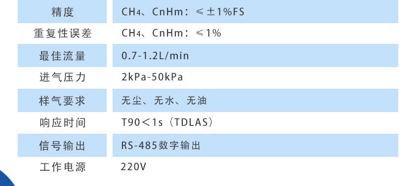 CH4、CnHm:≤±1%FS