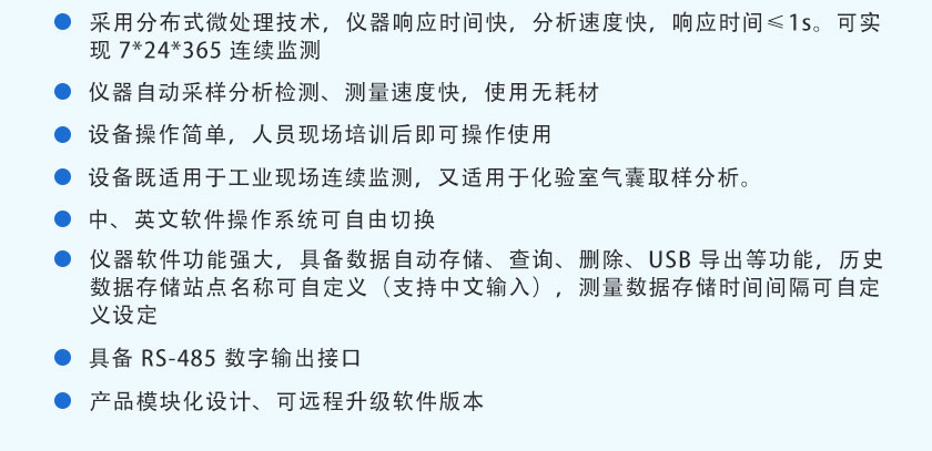 • 在線紅外氣體分析儀 TY-6300 在線紅外氣體分析儀TY-6300采用自主知識產權的NDIR非分光紅外技術,主要用于測量CO、CO2、CH4、C3H8、SO2、NO等氣體的體積濃度及熱值。適用于鋼鐵、化工、煤氣化、生物氣化、節能監測、能效測評等領域,測量焦爐煤氣、高爐煤氣、轉爐煤氣、混合煤氣、發生爐煤氣、生物燃氣等可燃氣體不同成分的體積濃度和熱值。